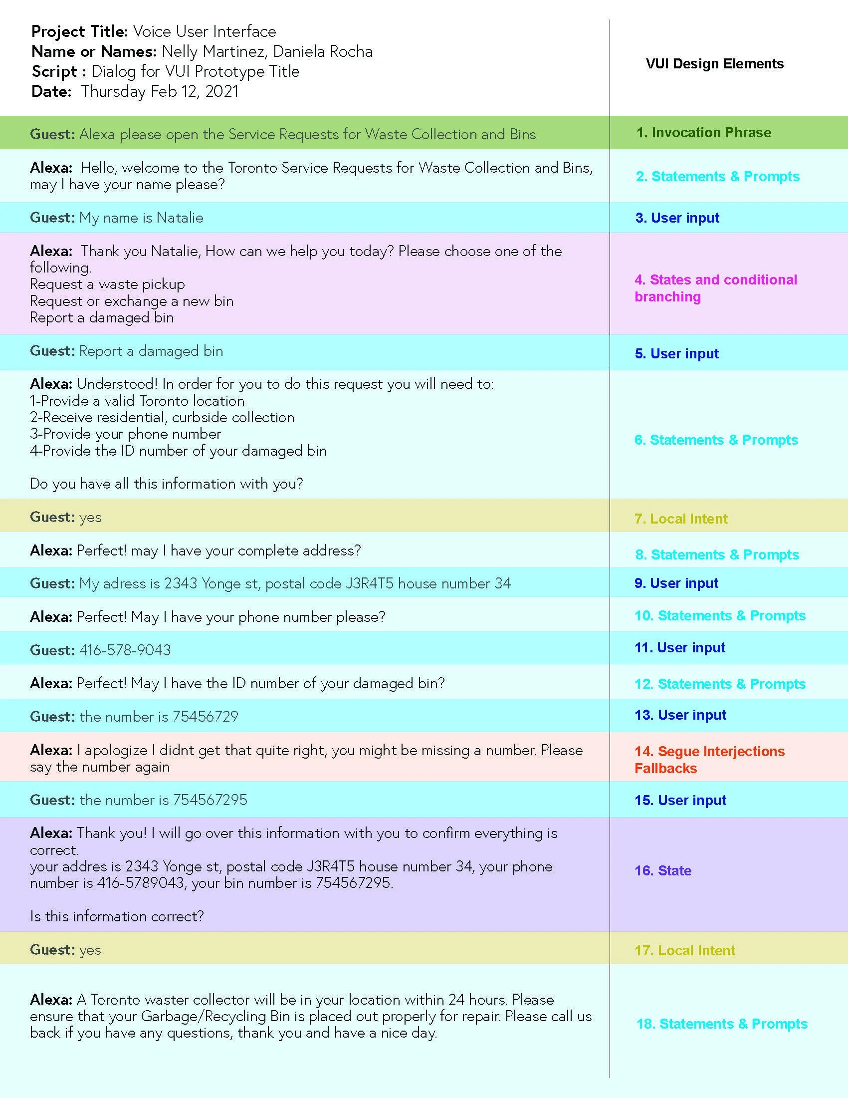 It is intended to simulate a phone automated menu for citizens calling the Toronto Service Requests for Waste Collection and Bins, or a Skill installed in Amazon’s devices with Alexa.